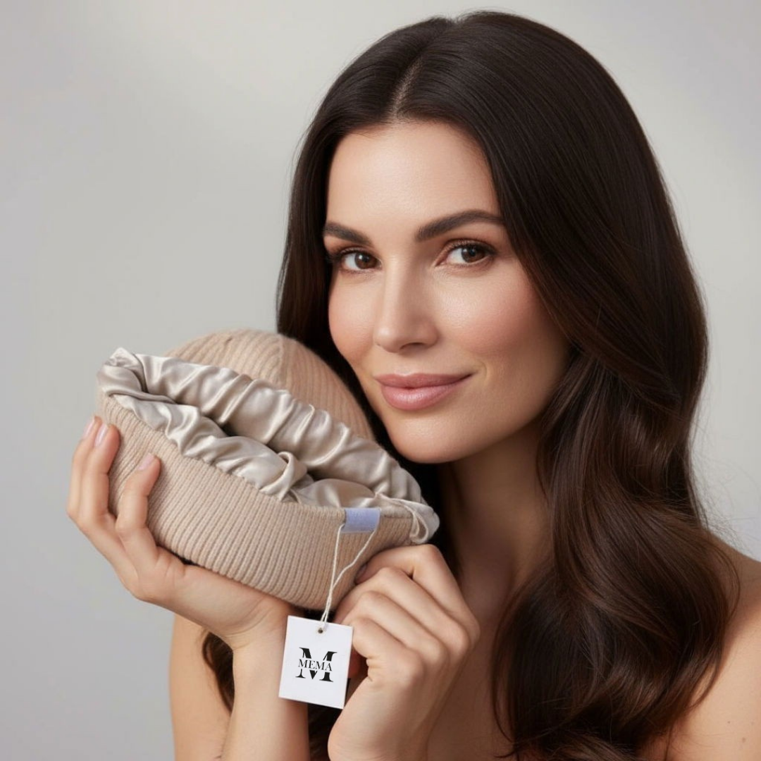 Die Samty Mütze bewahrt dein Haar zuverlässig vor Frizz, Abdrücken und plattgedrückten Partien. Das hochwertige Seidensatin Innenmaterial reduziert Reibung und verhindert, dass sich deine Frisur verformt. Dein Haar bleibt glatt, glänzend und in Form, selbst nach Stunden im Freien. Das Ergebnis: sofort sichtbar gepflegtes Haar ohne Nachstylen.